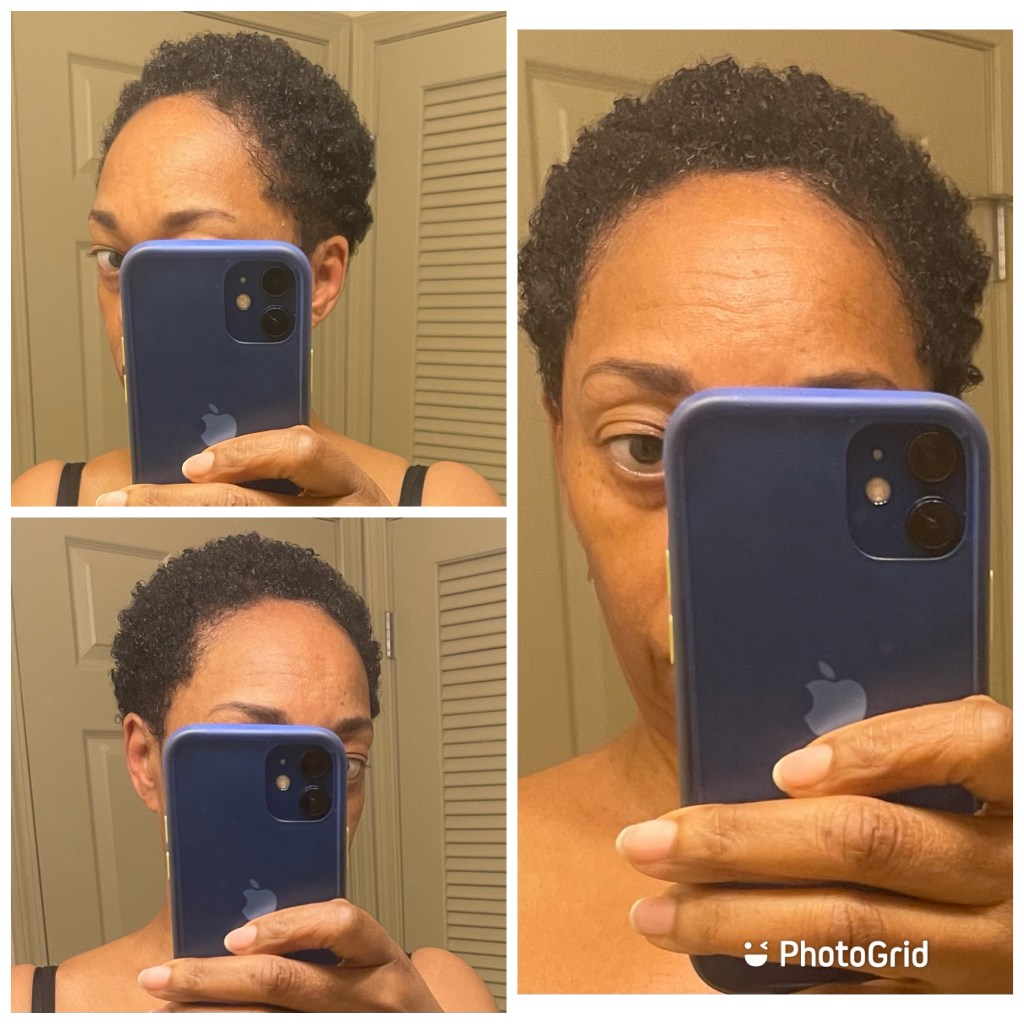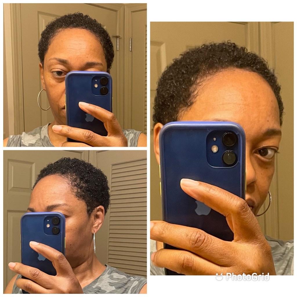 My hair and hairline look thicker. I’m debating whether I’m going to do another month of the biotin supplements. I’ll have enough oil to last me the next 30 days. I may want to monitor my progress without the supplement to see what my hair growth is without assistance.
